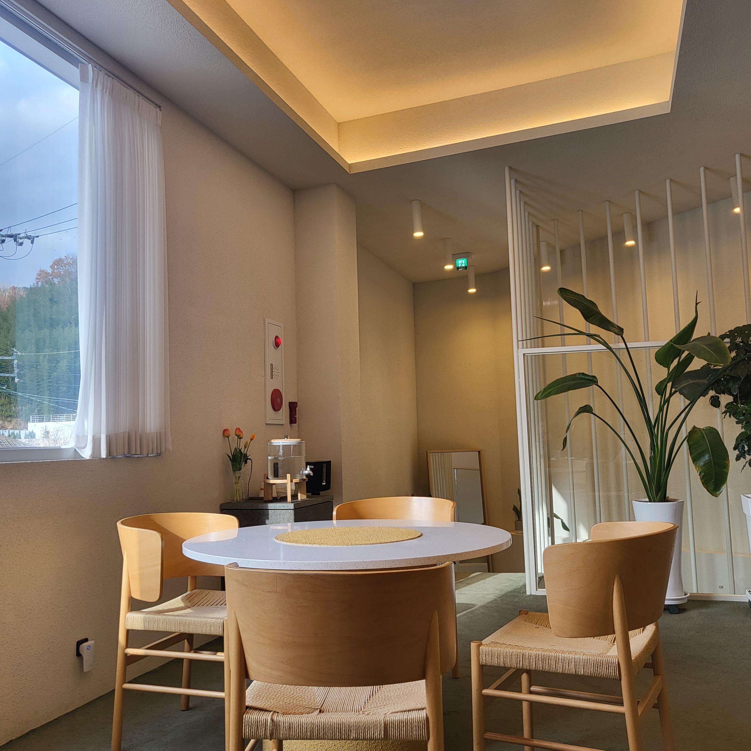뒤에 있는 동은 사람이 가득 차서 그리고 앞동 뒷동 사이에 외부 좌석은의자가 아파 보여서....