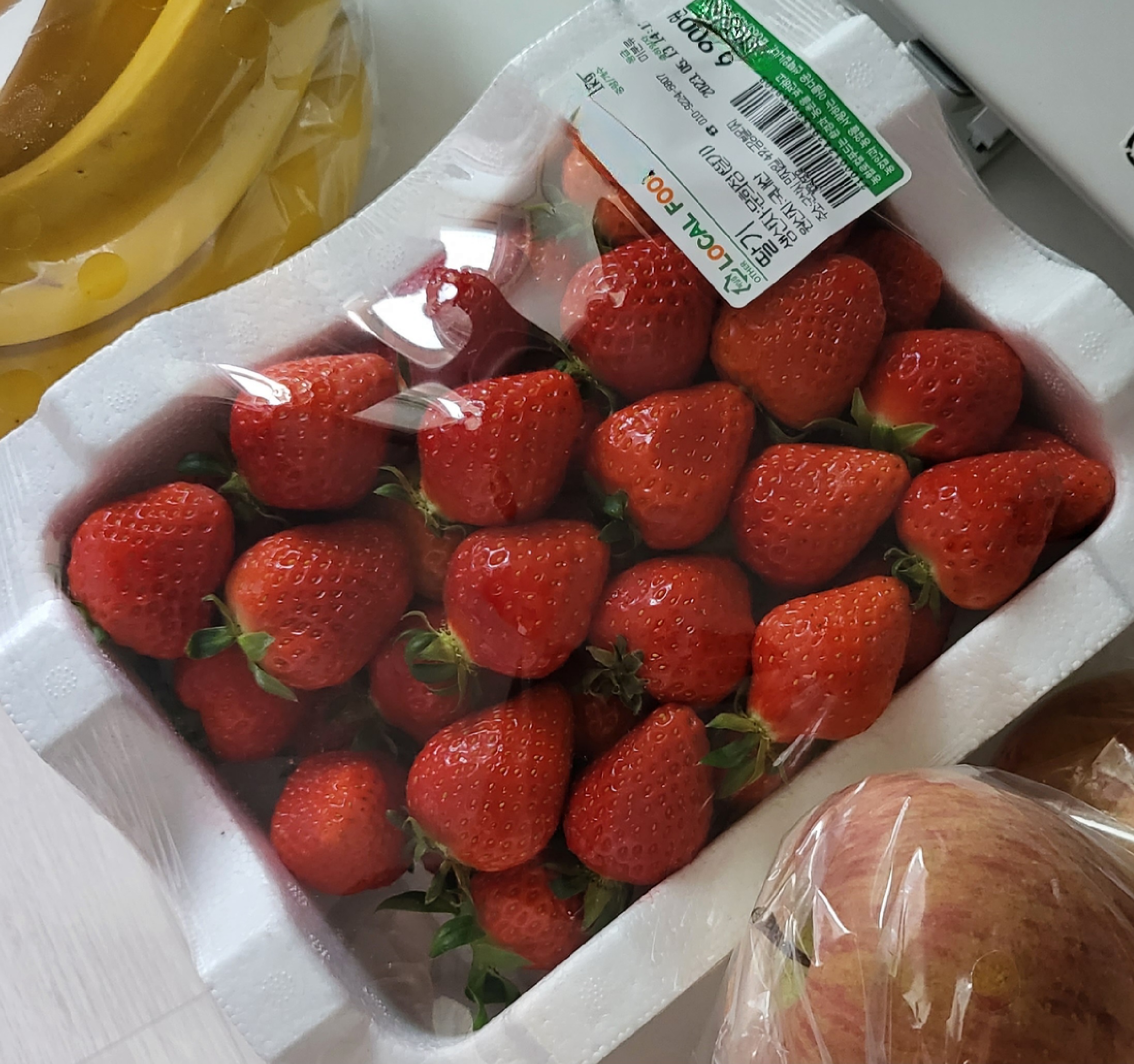 주말에 마트를 갔었는데 사과랑 바나나만 살 계획이었는데 딸기가 보여서 샀습니다