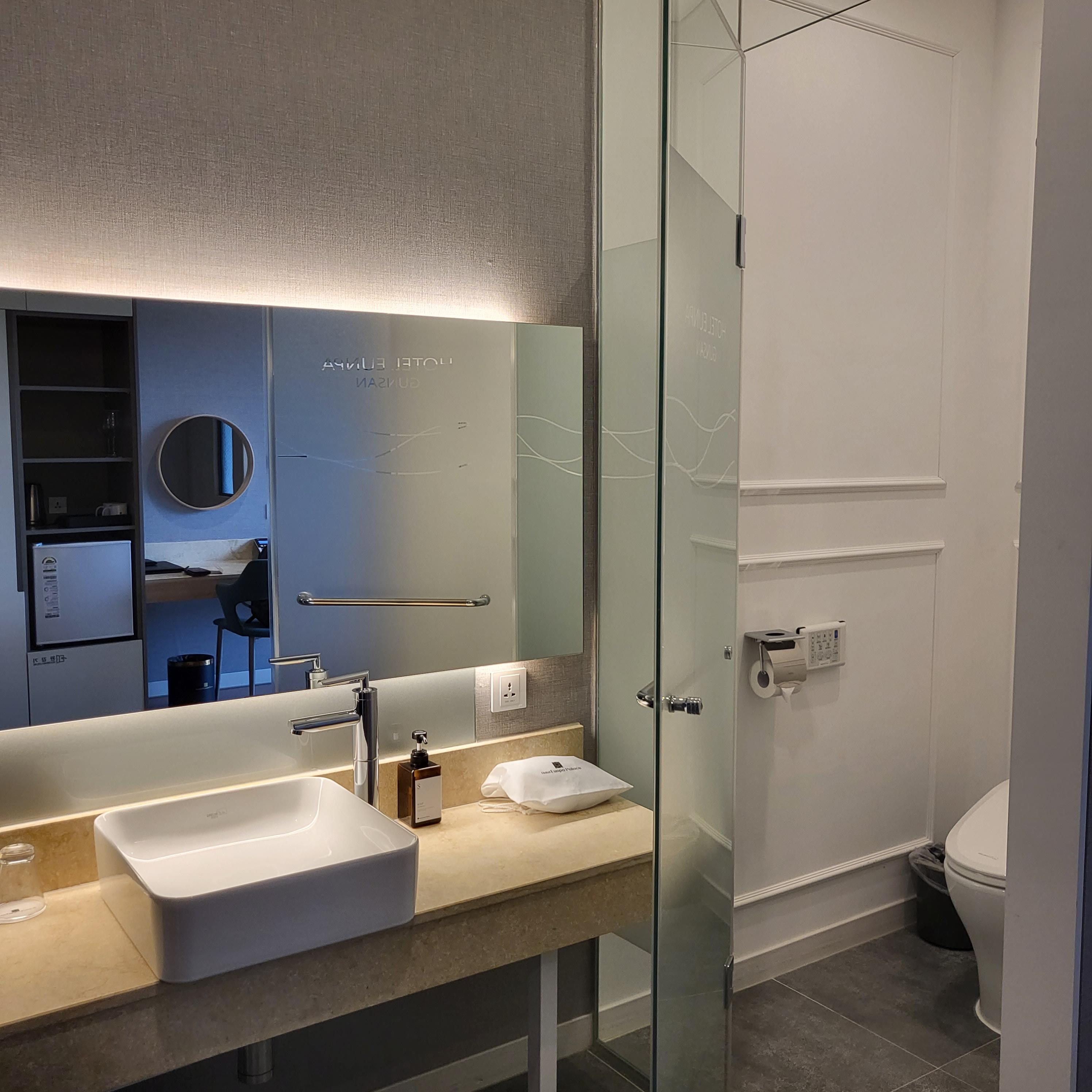 (드라이기, 샴푸, 바디워시, 컨디셔너, 핸드워시, 토너 수건 비치되어 있습니다)