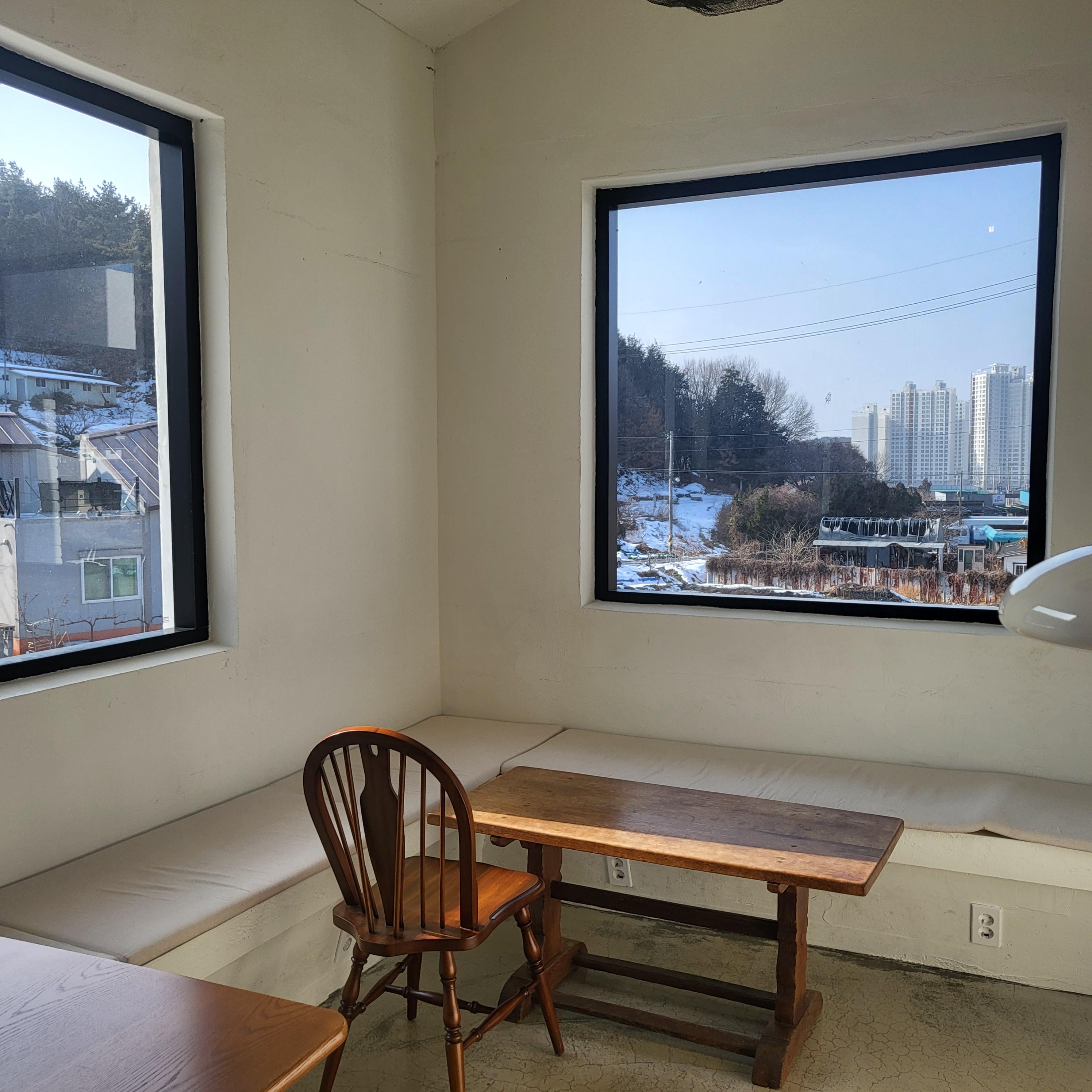 안쪽도 넓은 창이라 뷰가 좋습니다